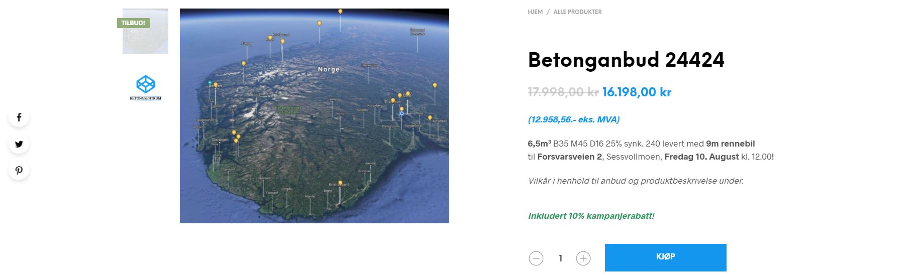 Det som er helt nytt er at våre kunder også kan bestille og betale betong direkte i nettbutikken. I nettbutikken vår har vi lagt ut de mest populære betongtypene som Garasjebetong, Kjellerbetong og betong til systemelementer, hvor man enkelt fyller inn antall kubikk man ønsker. Utifra dette får du et pristilbud direkte hvor du enkelt kan legge produktet i handlekurven og fullføre betalingen med Klarna. Vi tilbyr også gavekort på betong til de som har “alt” og fortjener Norges tyngste overraskelse!