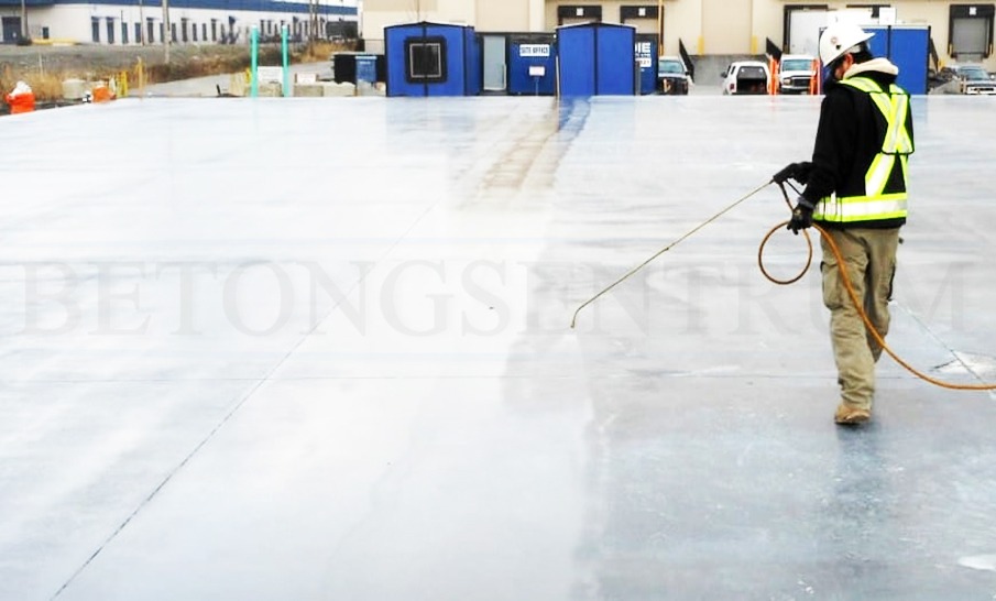 Dette er et svært viktig tiltak som vil hindre ytterligere avdamping og sikre at betongen har nok fuktighet til å herde på tiltenkt måte. Hvis dette ikke gjøres vil man risikere at betongen sprekker opp i overflaten.