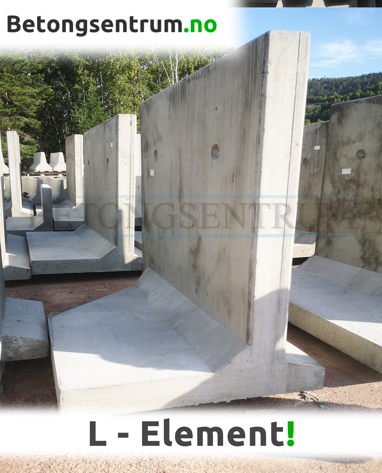 L-elementer leveres i høyde på 1m, 1,3m, 1,8m og 2,3m, alle med bredde på 2,3m.