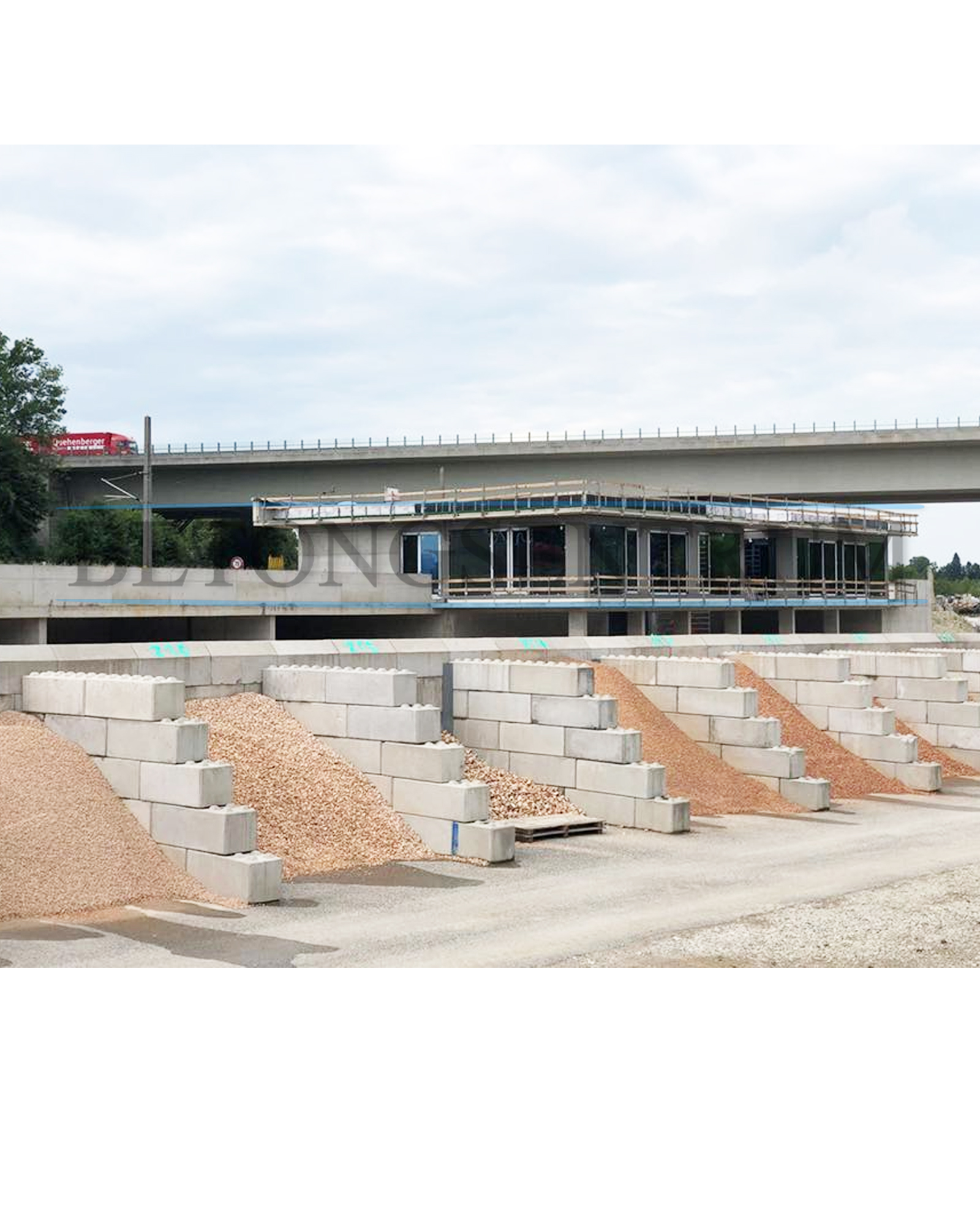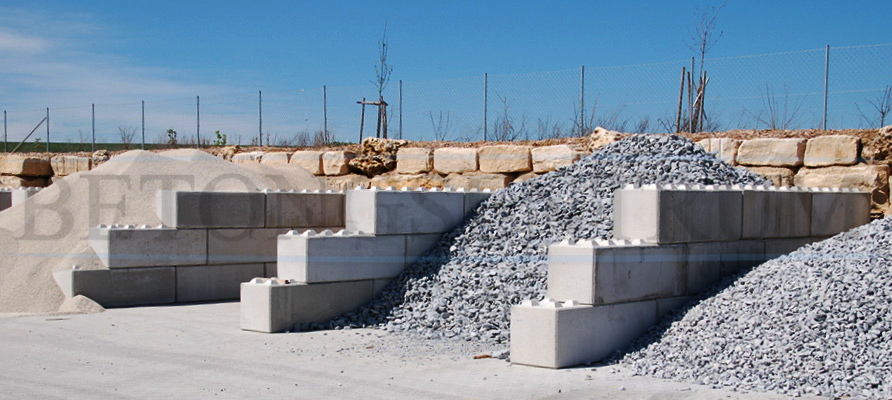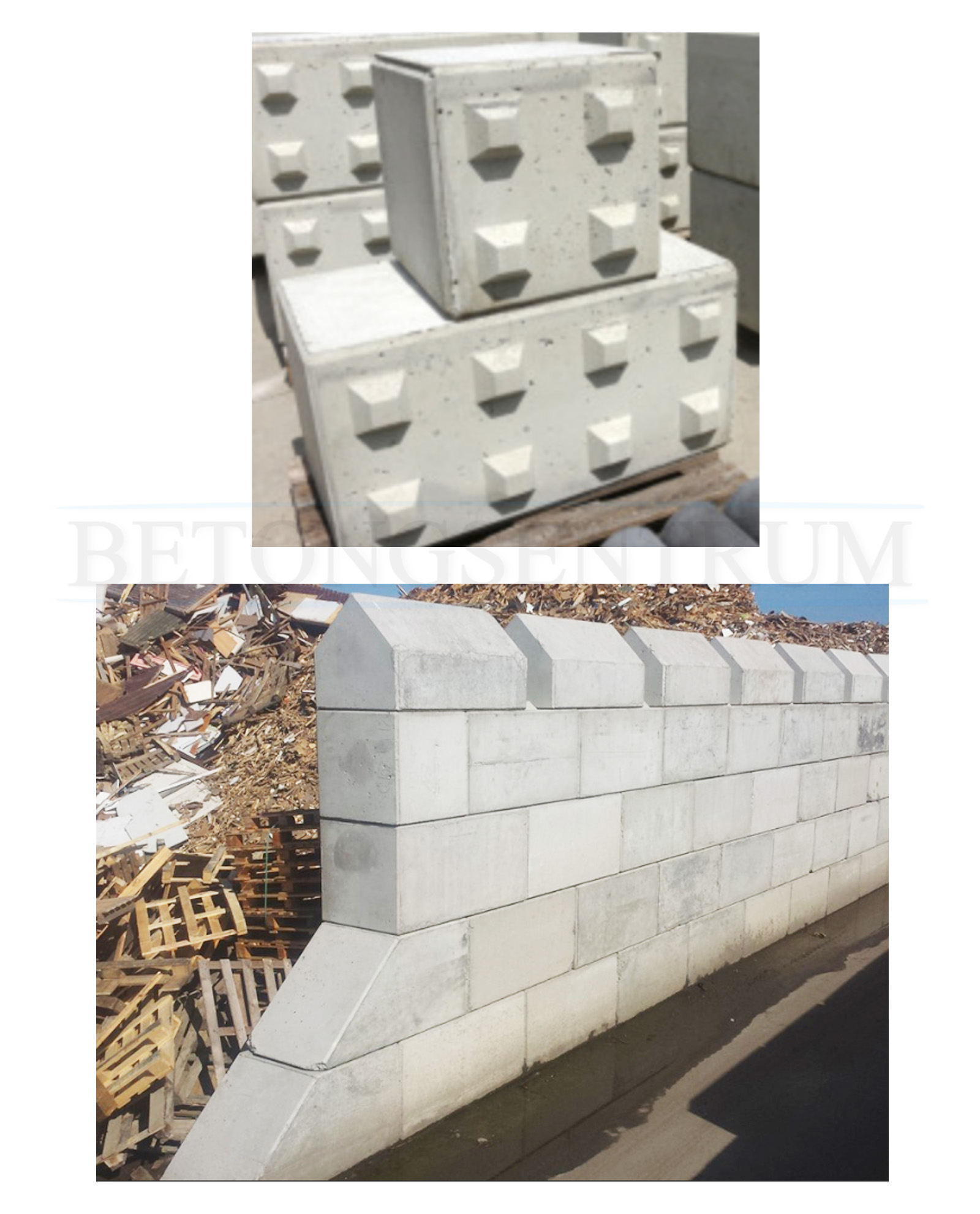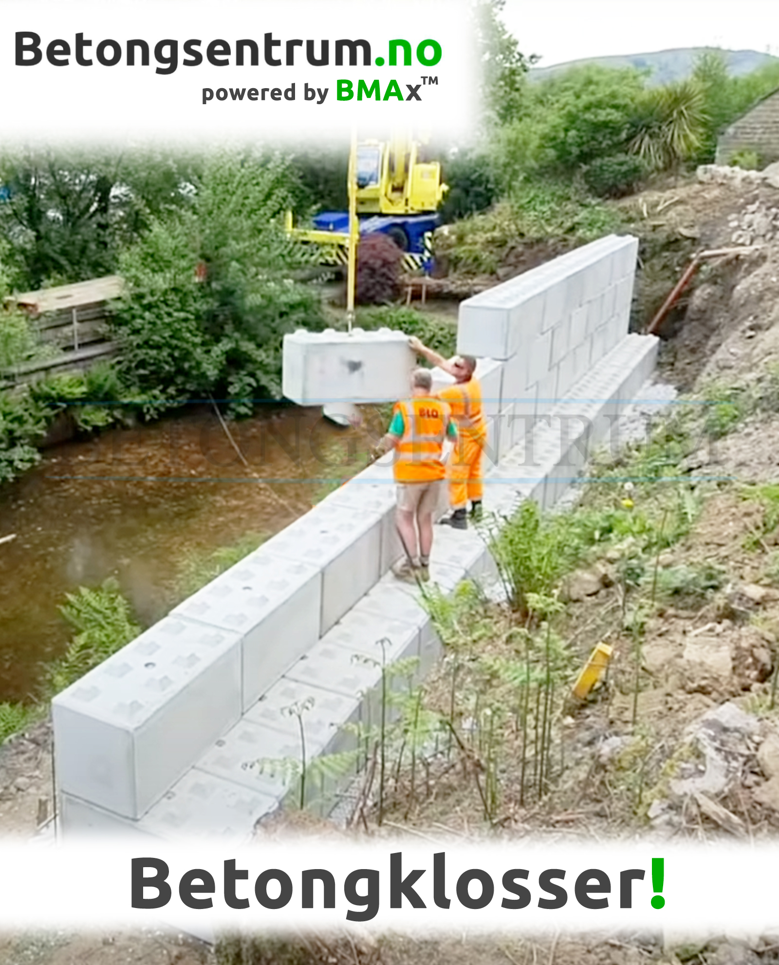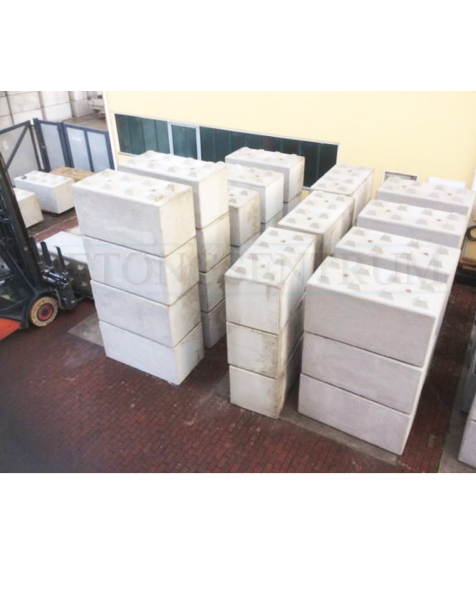 Betongklosser kan stables i høyden og låses sammen som LEGO! De leveres i forskjellige størrelser og bredder, hvor de mest vanlige er 160x80x80cm (LxHxD) og 180x60x60cm. De kan også leveres som halvblokker, skråblokker og i andre spesialmål etter avtale.