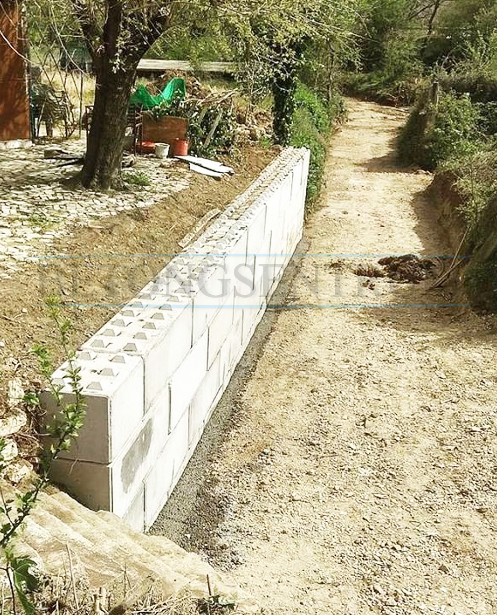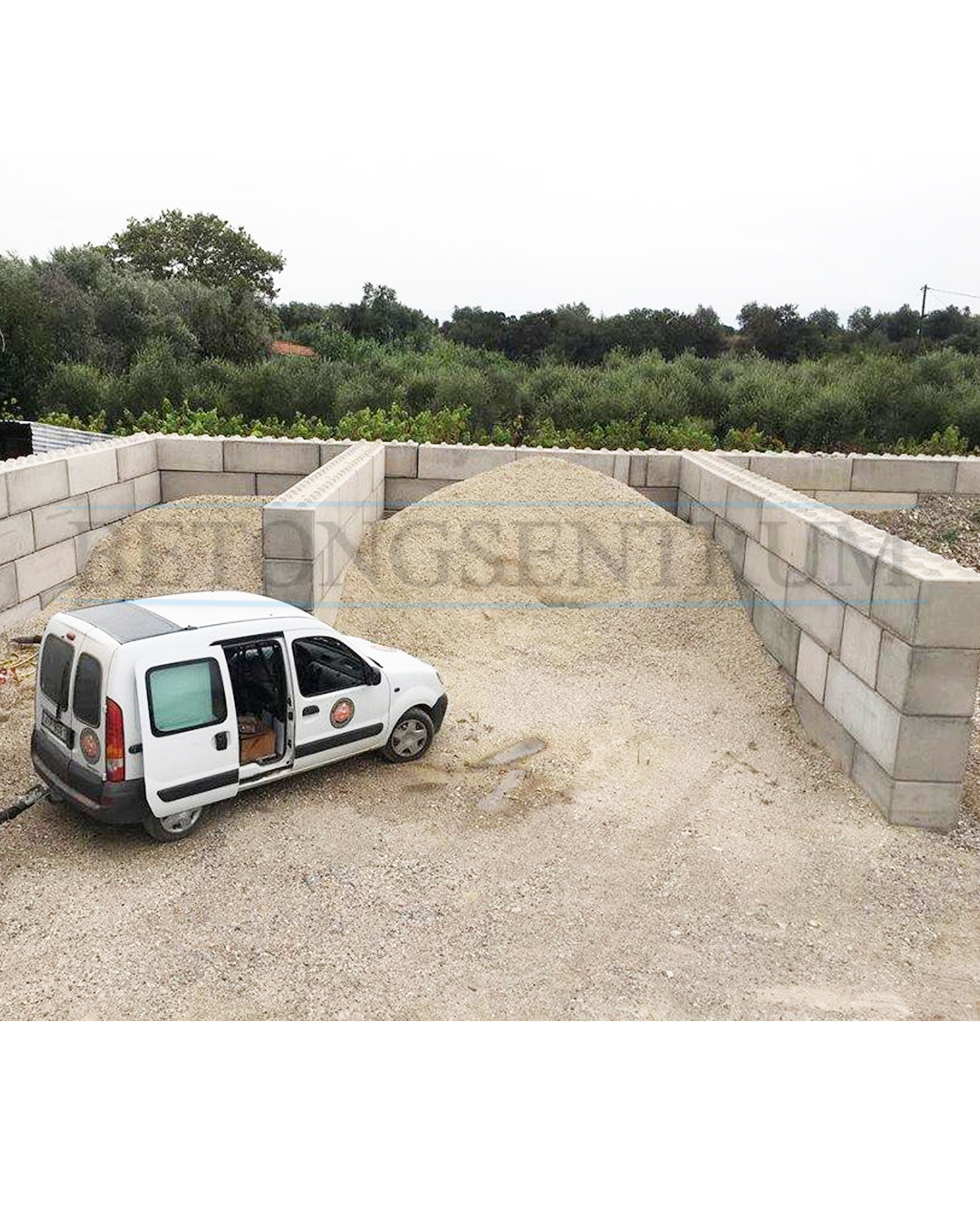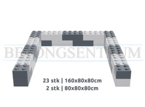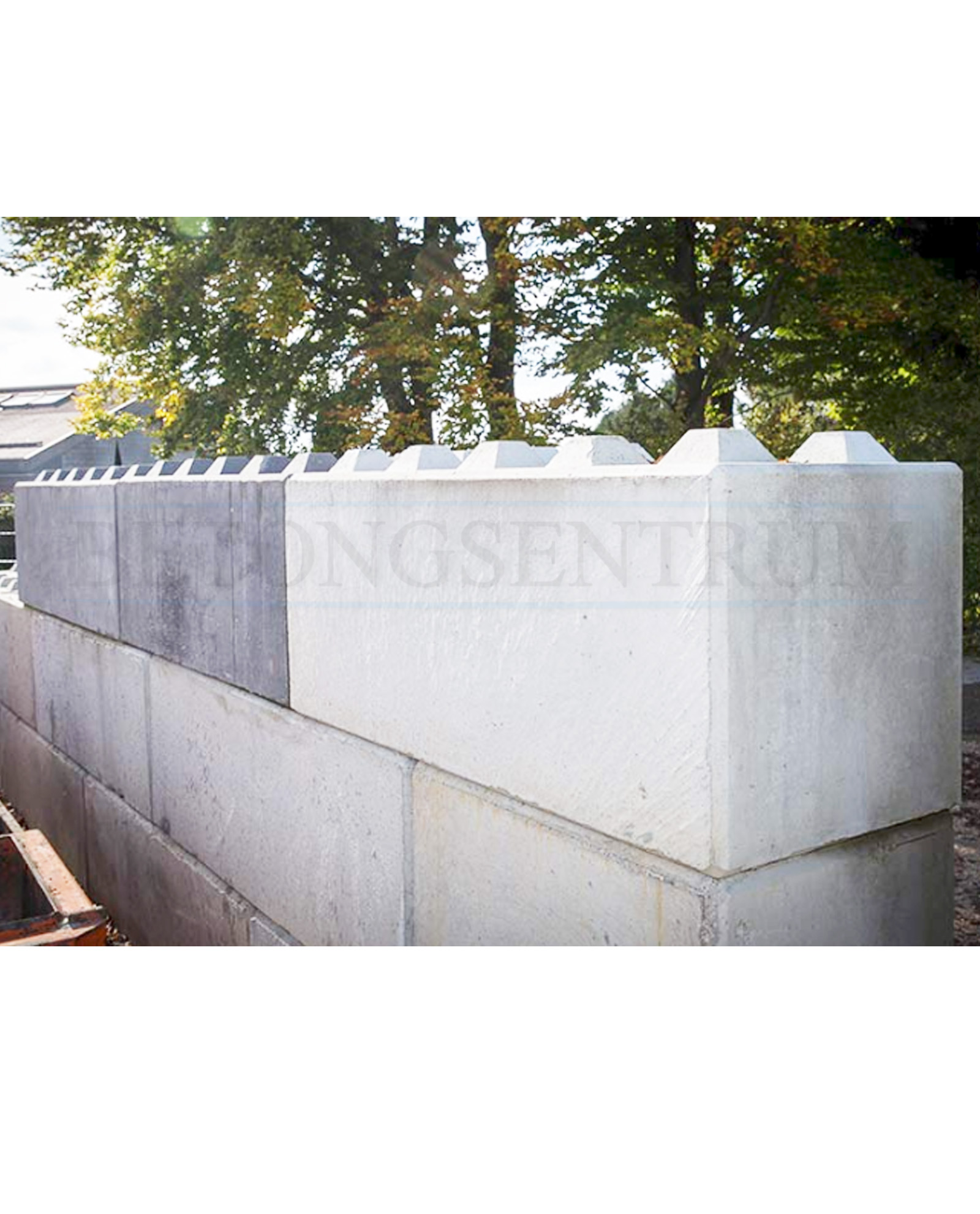 Under er et eksempel på bruk av betongblokker stablet i “hestesko” i 2x høyder.
