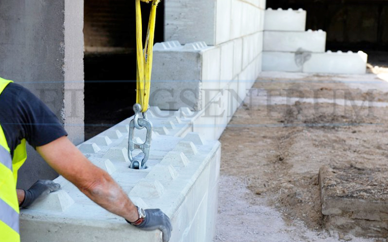 Betongblokkene løftes på plass via innstøpte løfteanker eller ved bruk av betongklype. Klossene kan stables med kran, hjullaster, gravemaskin eller tilsvarende.