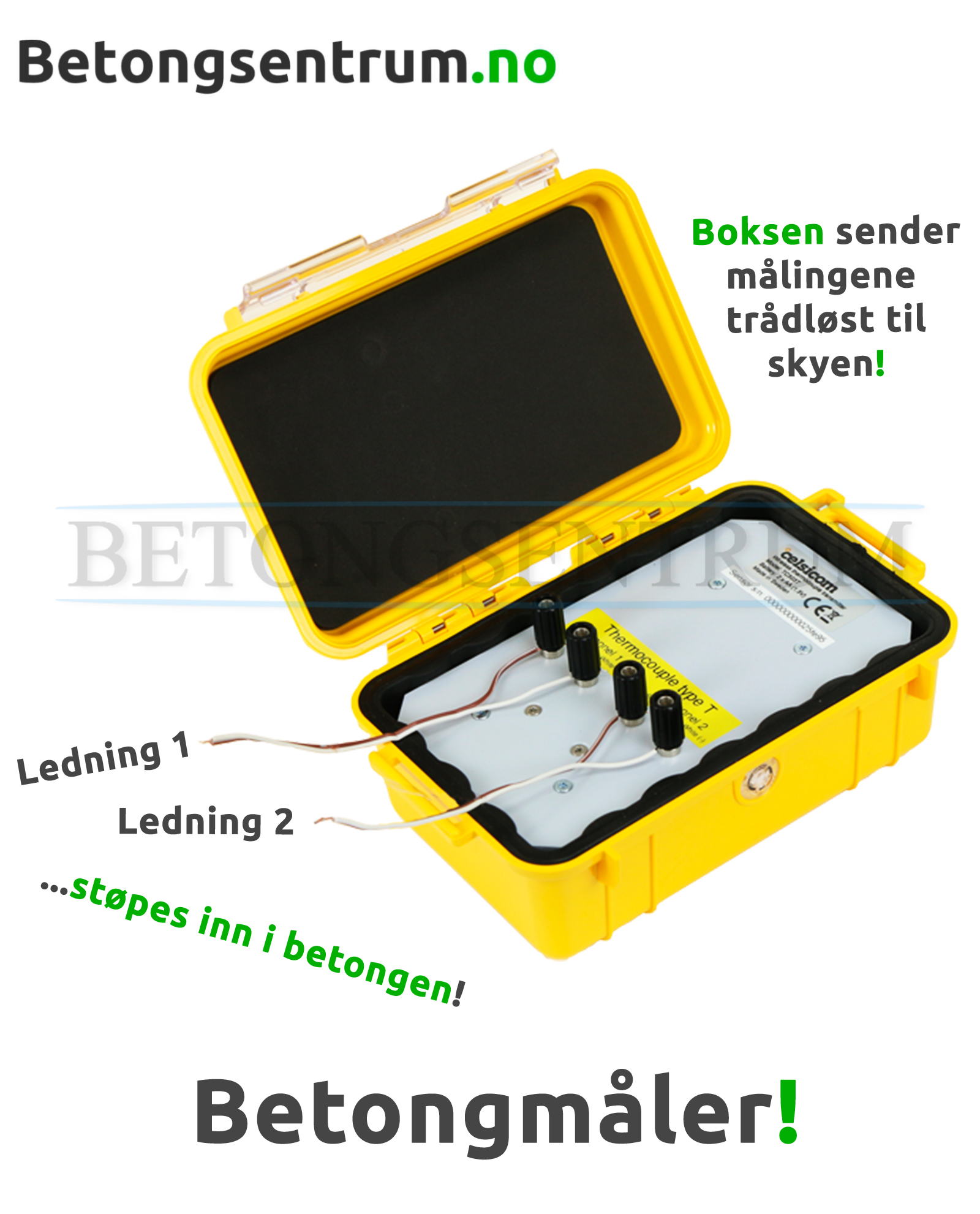 Betongmåler for logging av temperatur i nystøpt betong og fortløpende beregning av fasthetsutvikling.