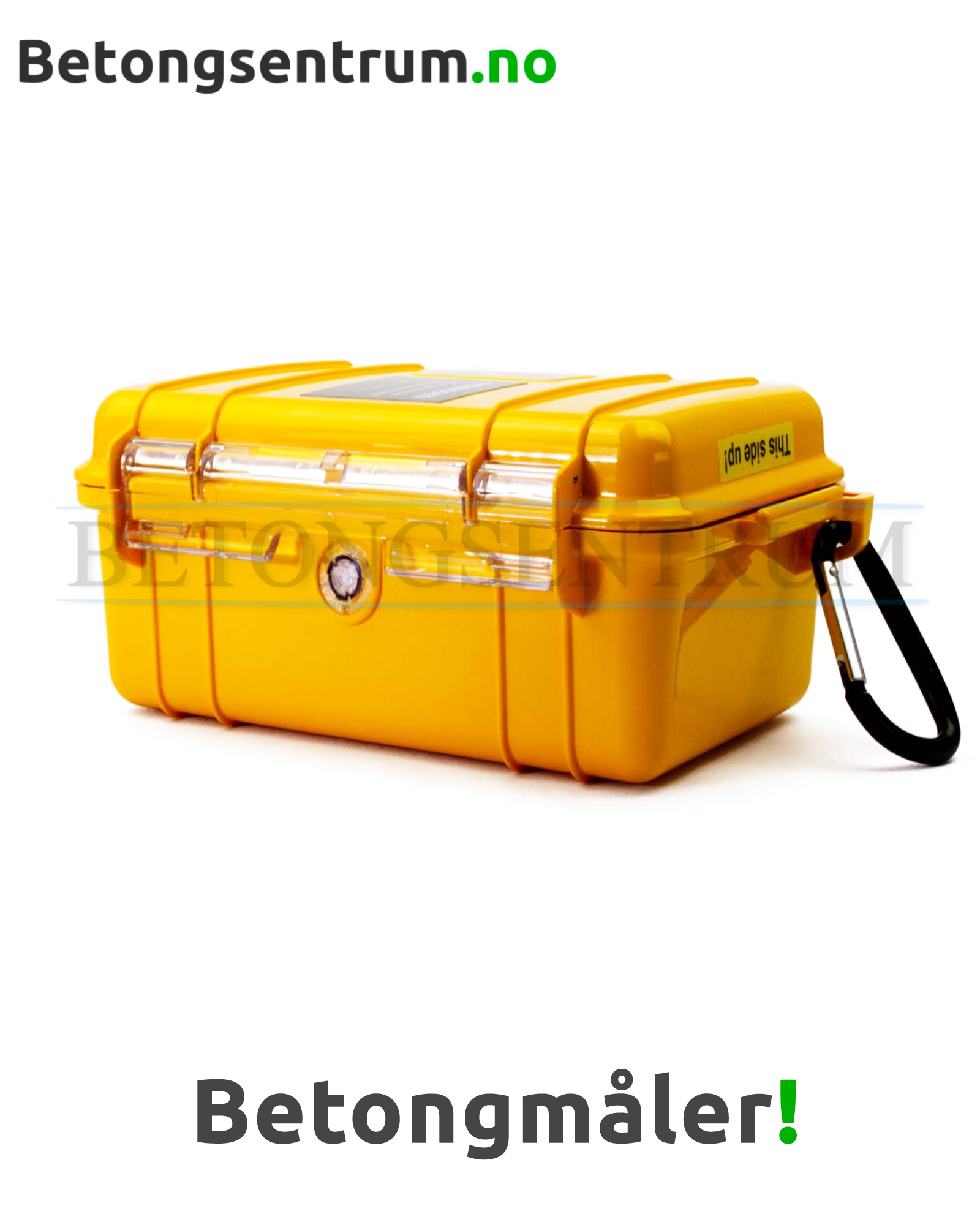 Celsicom TC603 måler både temperatur og fasthetesutvikling. Her er dataenheten bygget inn i den gule, vanntette boksen, og den måler temperatur via kabel og med den innebyggede temperaturmåleren. Ingen plugger nødvendig. Dette er en trådløs datalogger som gjør det mulig å følge betongens utvikling live på mobil, nettbrett eller datamaskin!