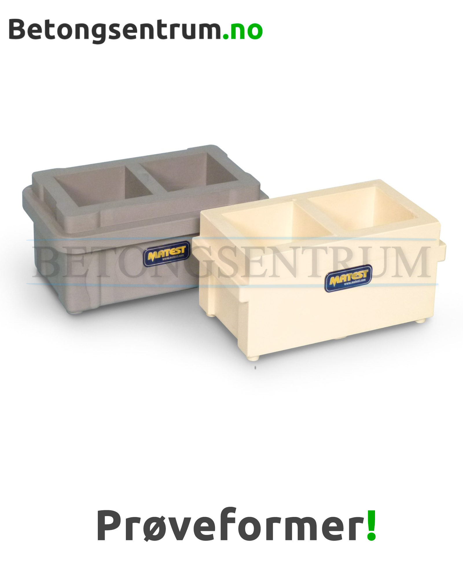 Se alle prøveformer på denne linken og alt testutstyr for betong her.
