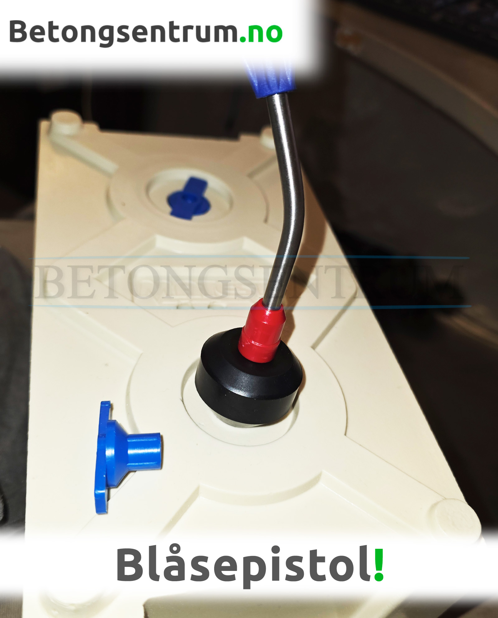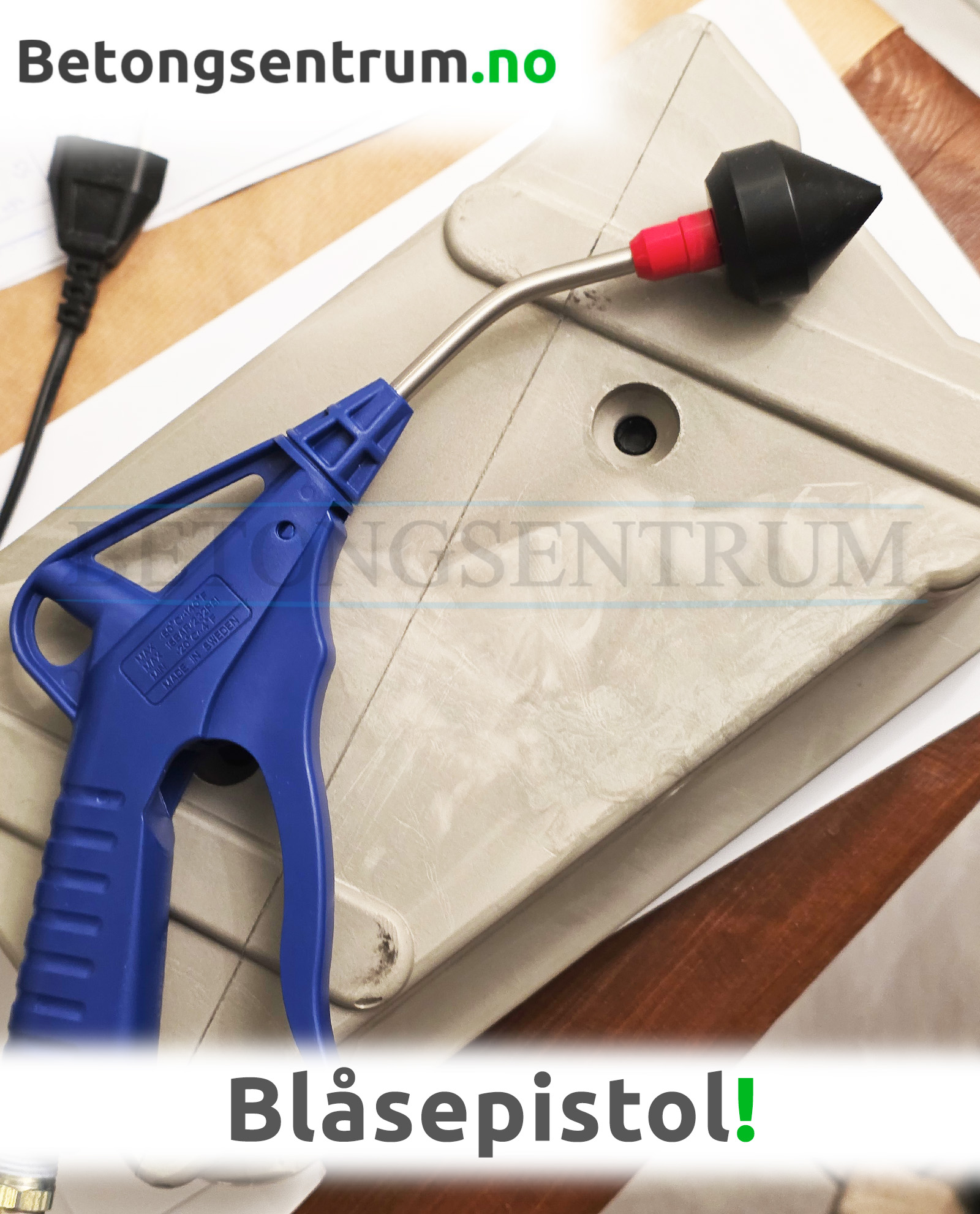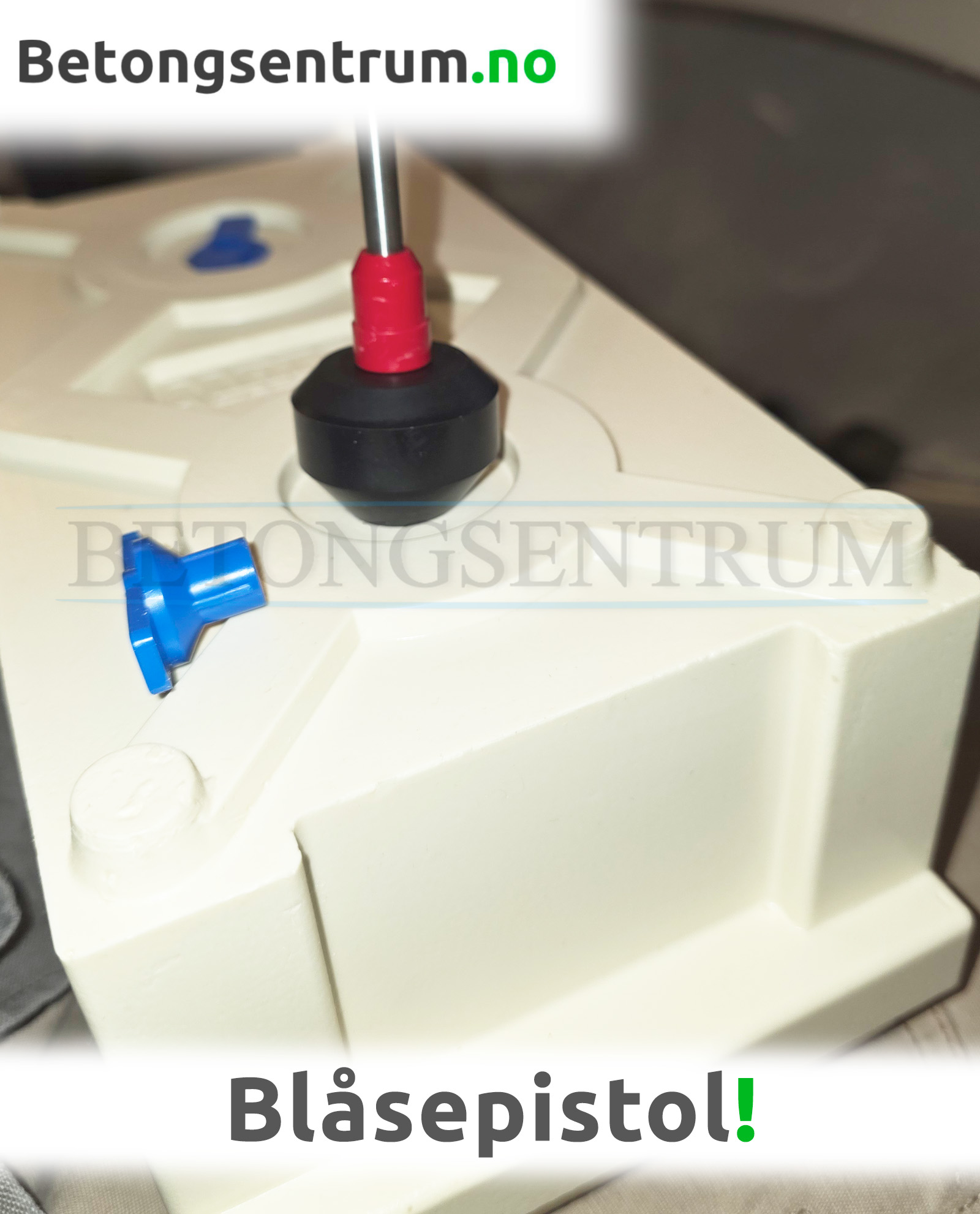 Blåsepistol til Prøveform som avformes ved hjelp av trykkluft.