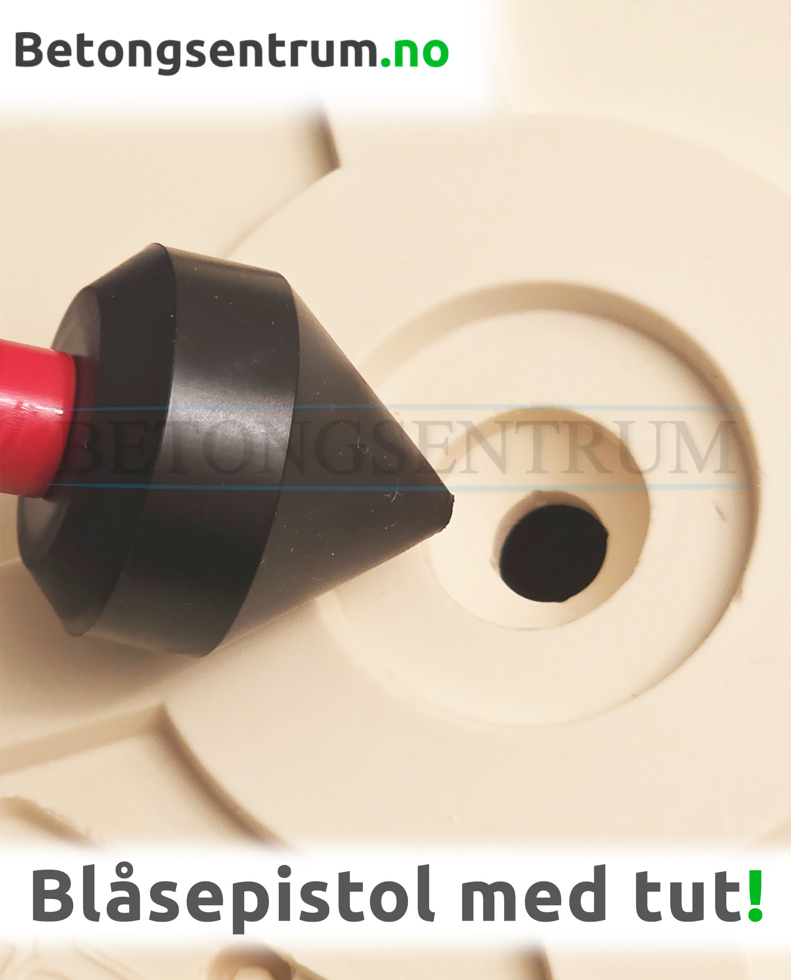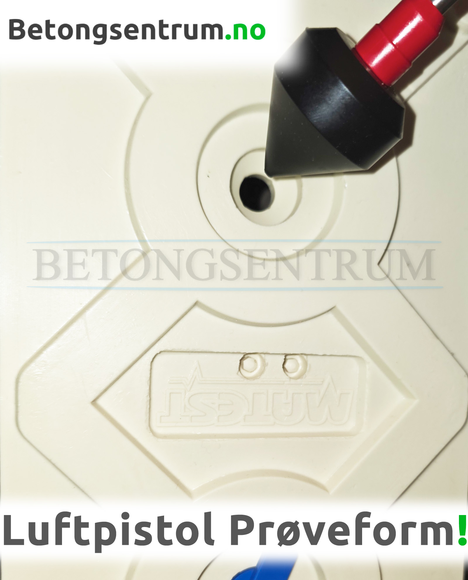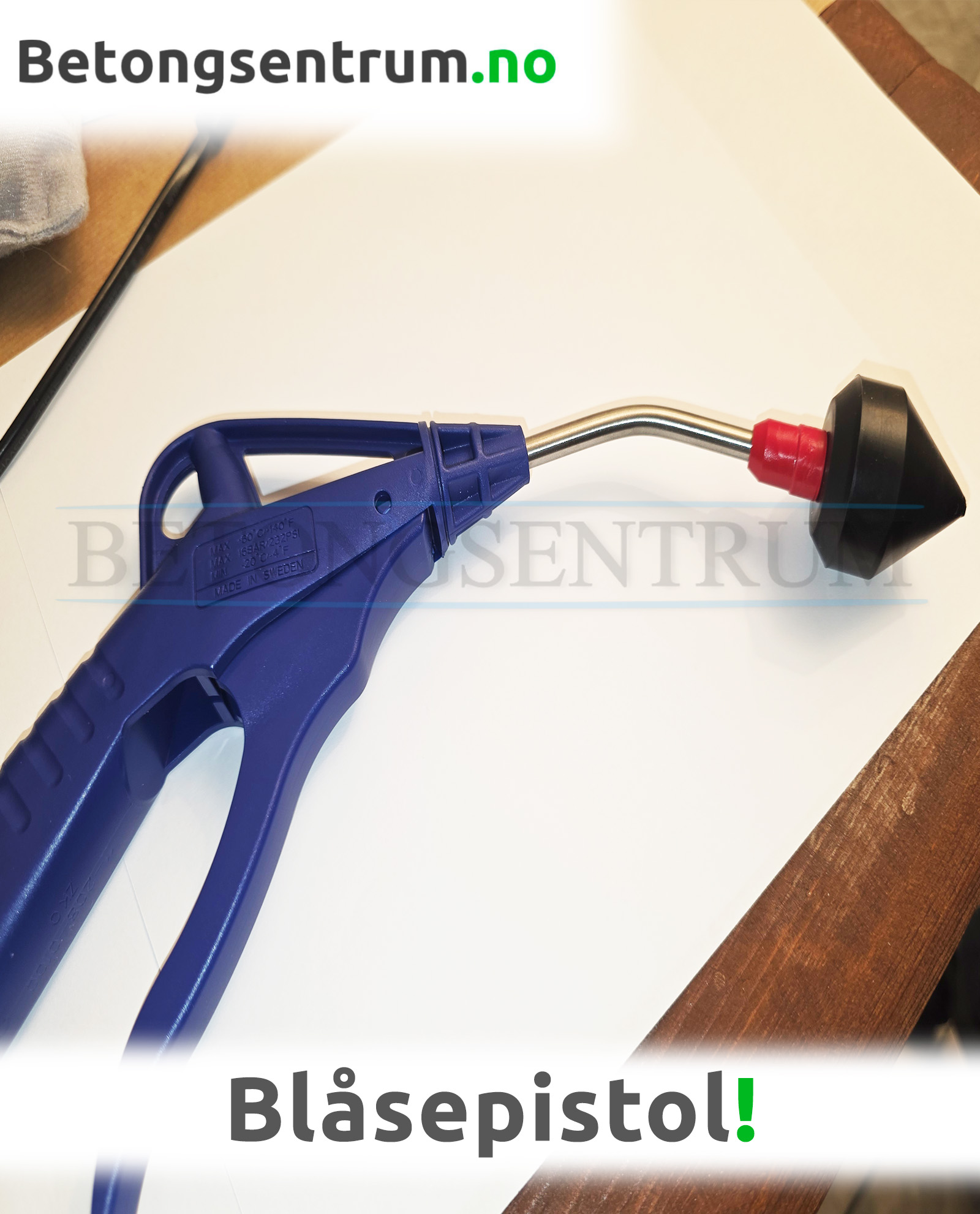 Blåsepistol til Prøveform som avformes ved hjelp av trykkluft.