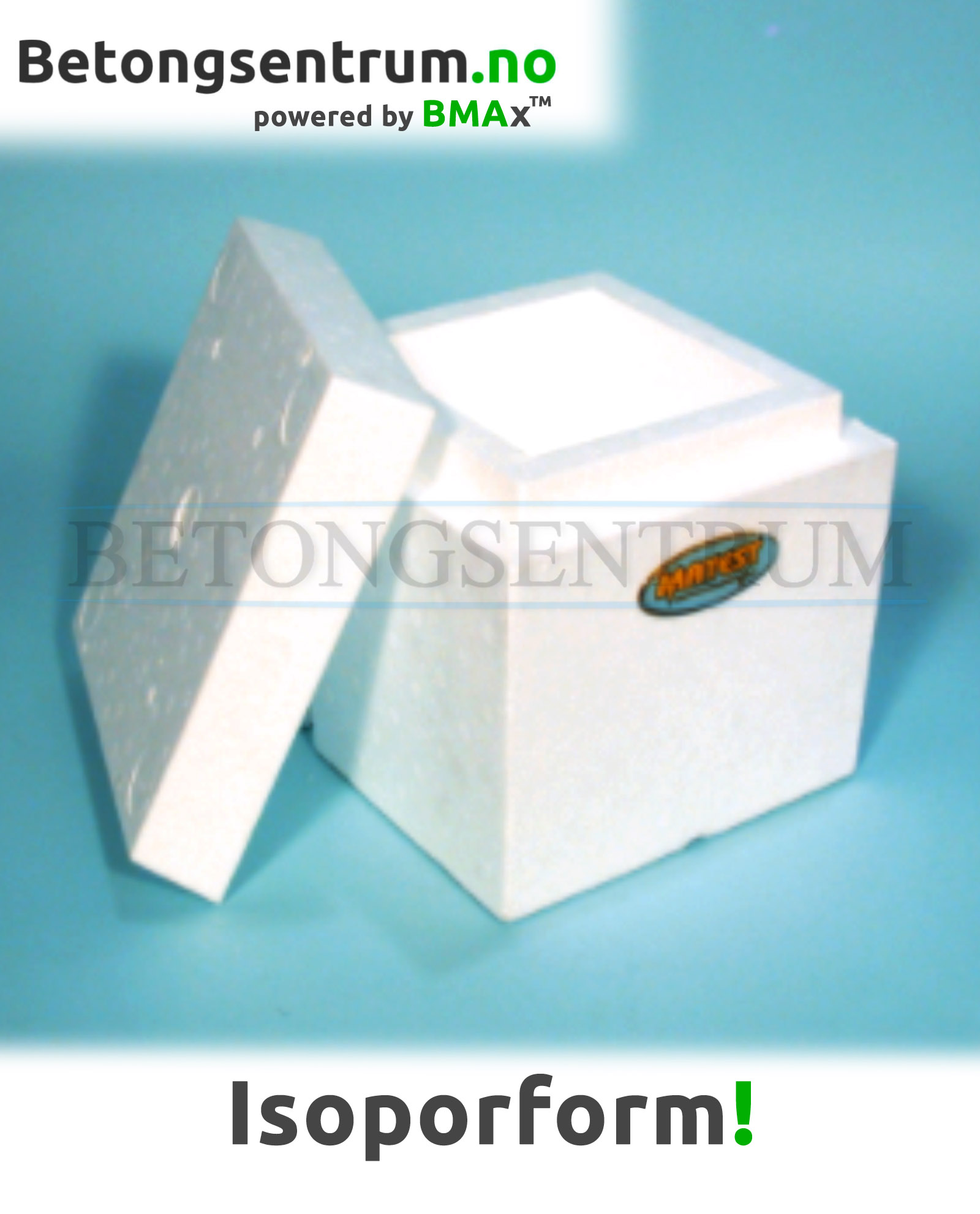 Isopor prøveform for støp av terning i størrelse 150x150x150mm som ledd i testing av betongkvalitet.