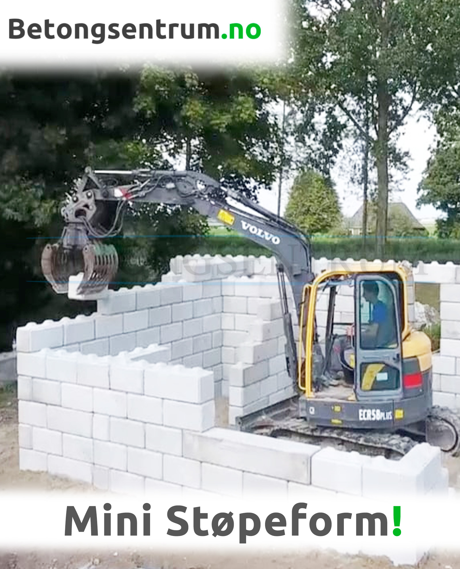Mini støpeform for produksjon av små klosser i betong. Betongklossene som produseres kan stables og benyttes til støttevegger, til inndeling, bygg og lignende. Klossene i betong kan i prinsippet benyttes som legoklosser som låses i hverandre.