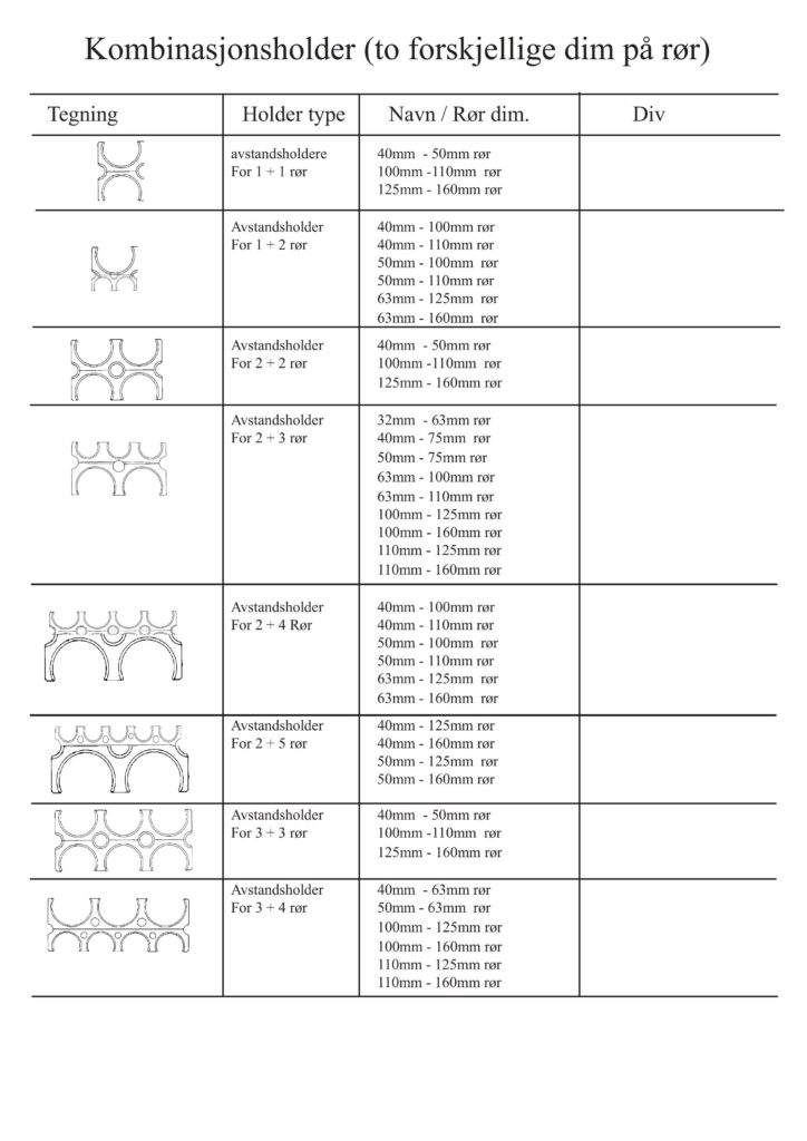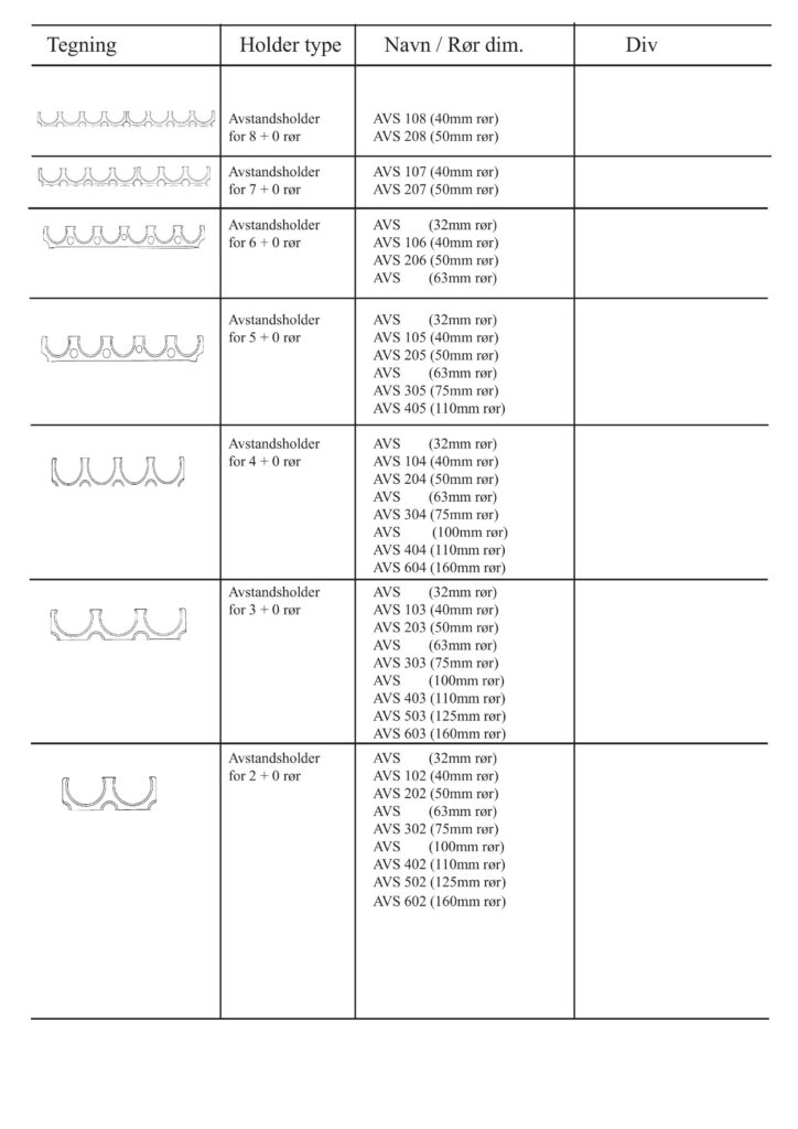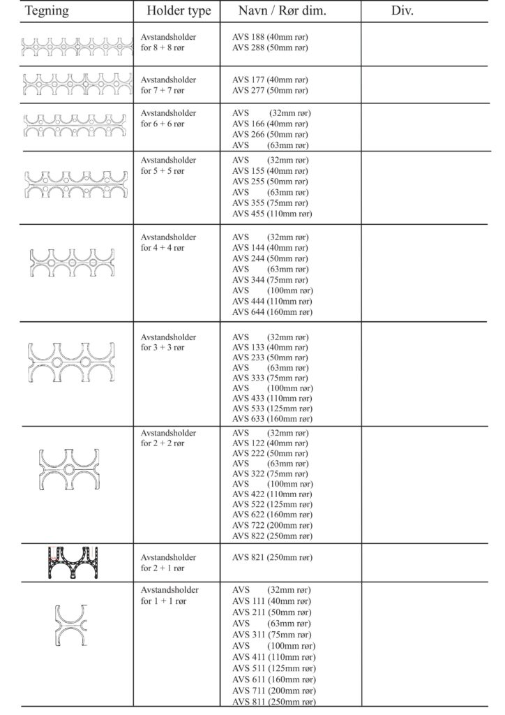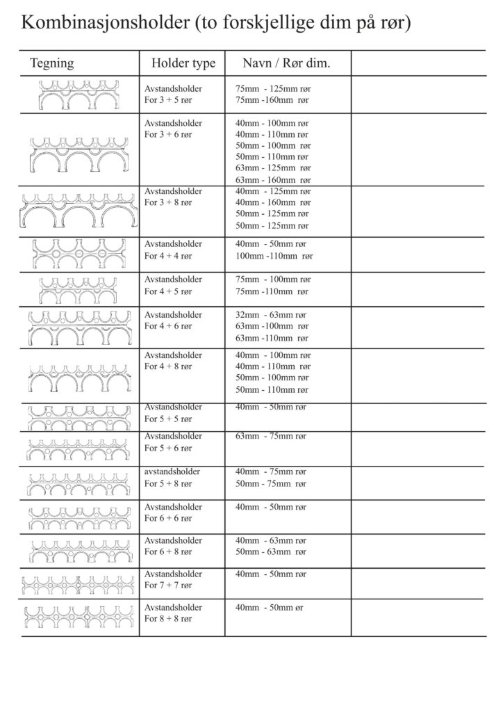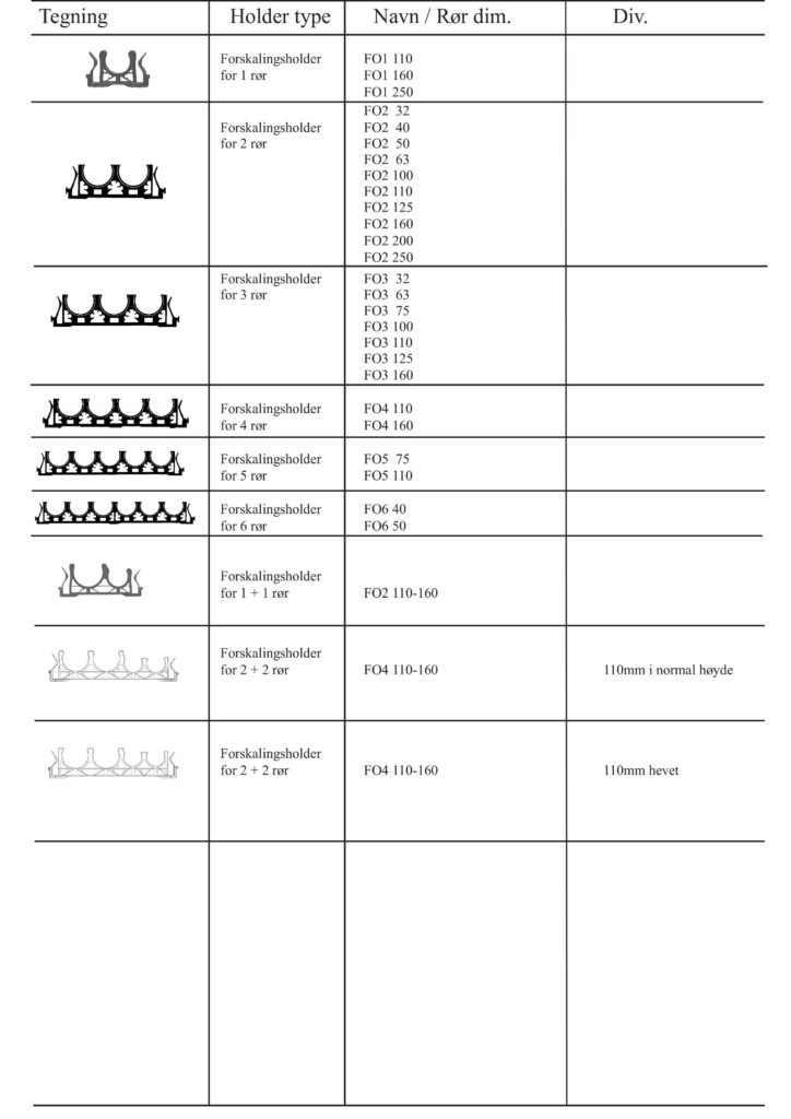 Under følger en liste over tilgjengelige deler til OPI systemet, med Holdere, Rør og Forskaling.