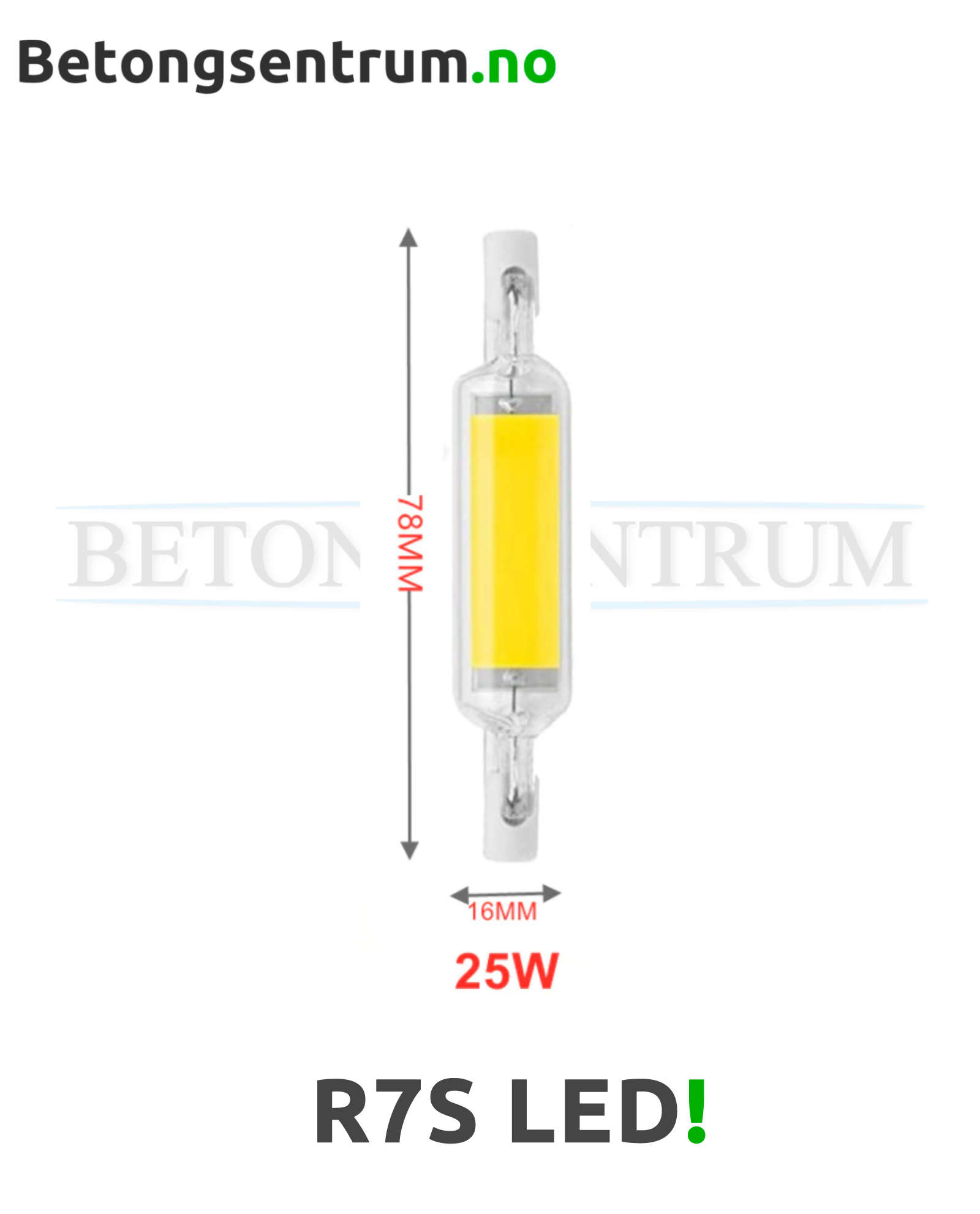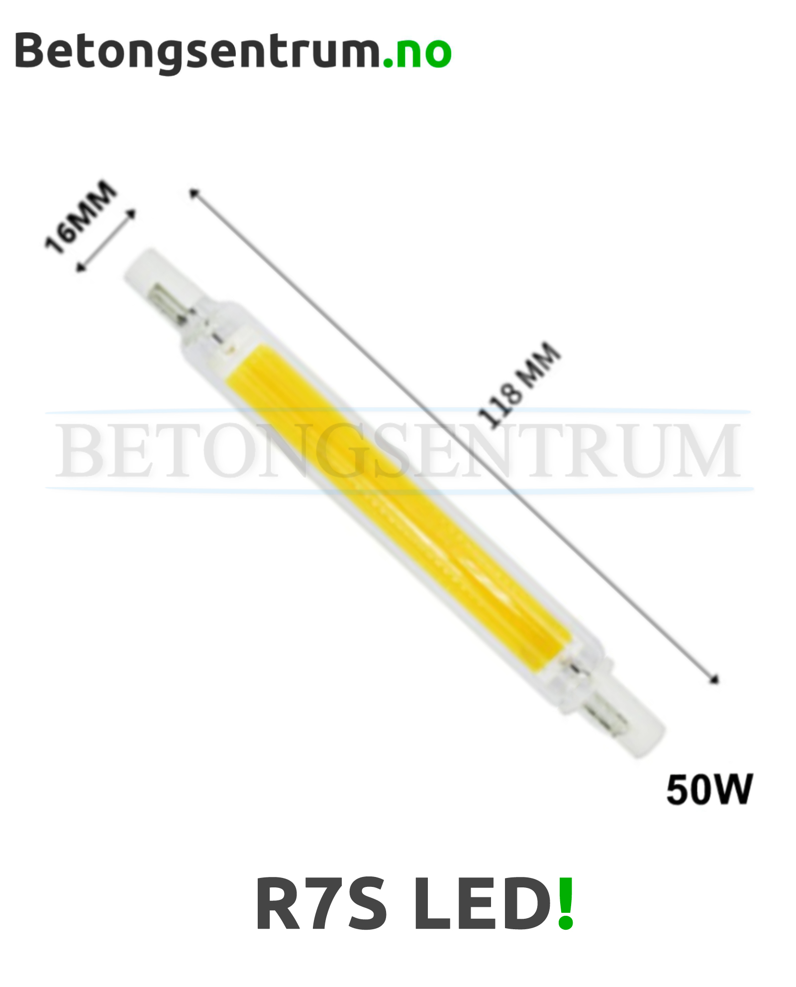 R7S LED pære til arbeidslys, lamper og lignende som erstatter tradisjonell halogenpære.