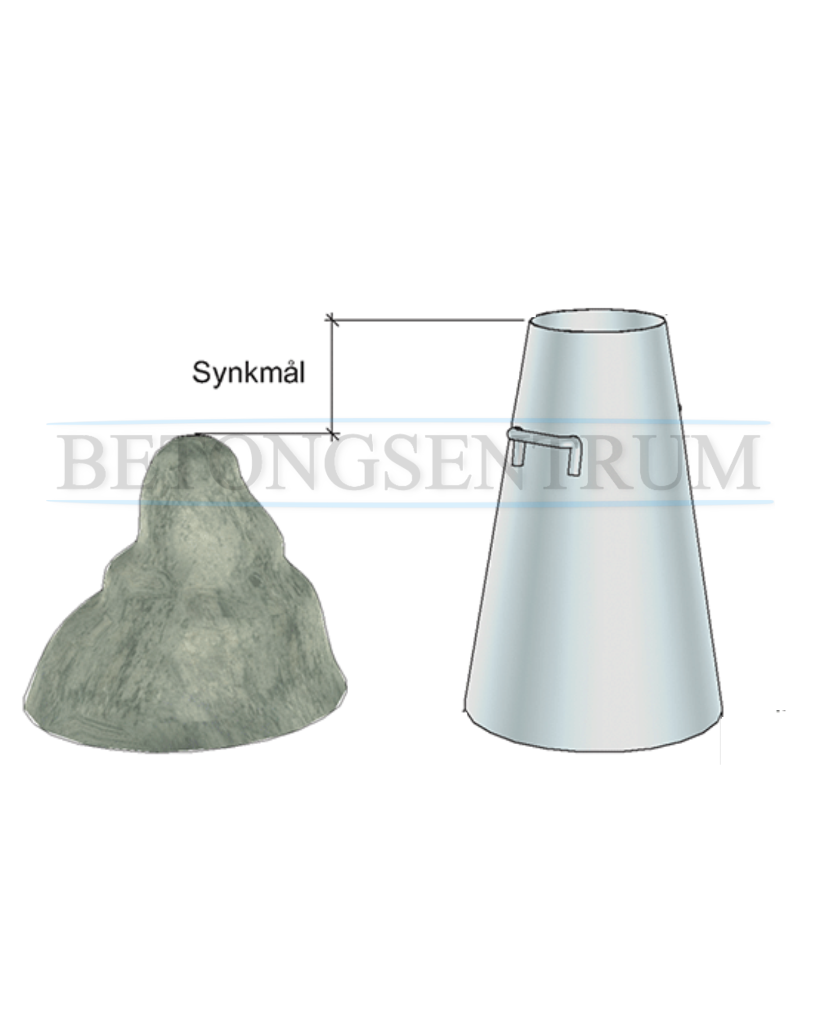 Kjeglen fylles med betong og løftes opp. Betongen synker sammen og “synk” måles i millimeter fra toppen kjeglen og ned til betongoverflaten.