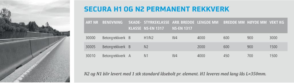 Veisperringen Secura System er et norsk rekkverk i betong utviklet i henhold til Standard NS-EN 1317, og veidirektoratets krav.