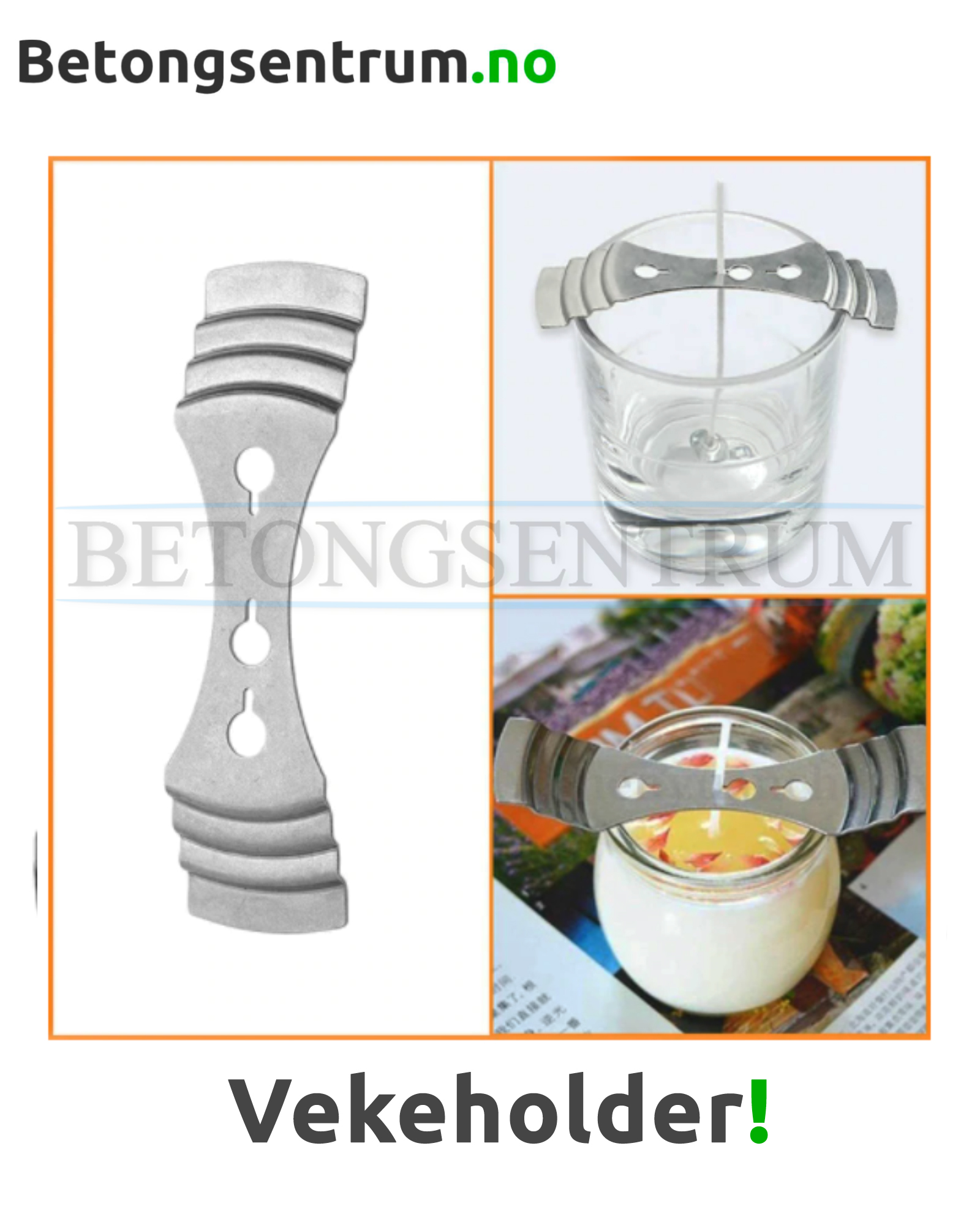 Vekeholder i metall som gjør det enklere å støpe produkter med veke i.